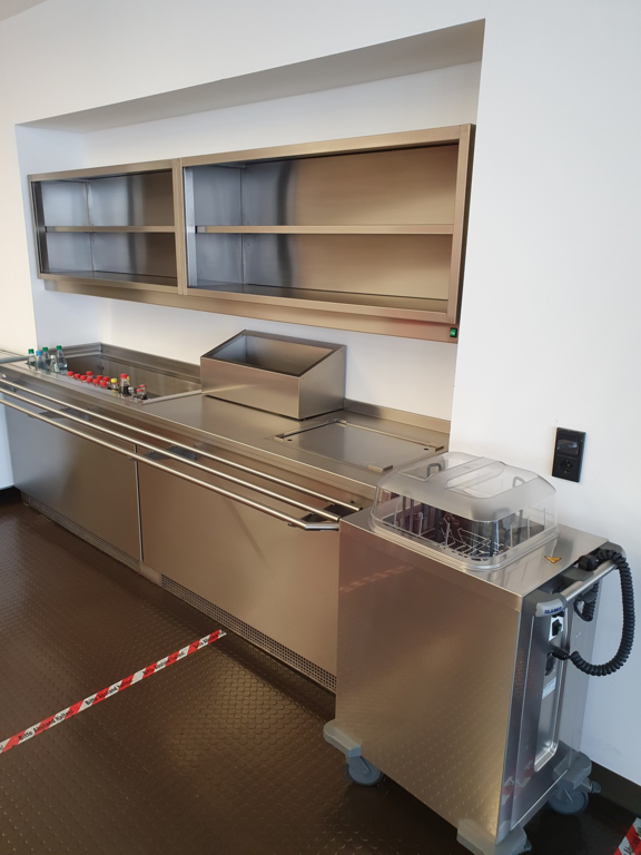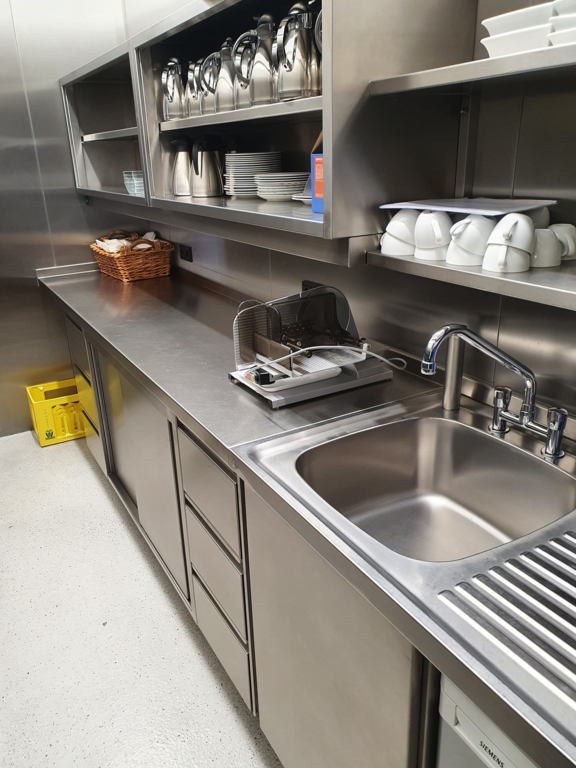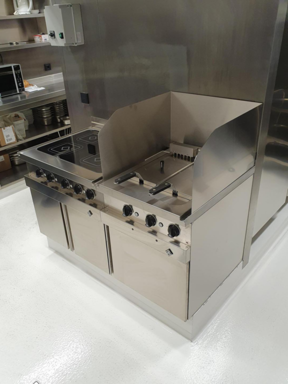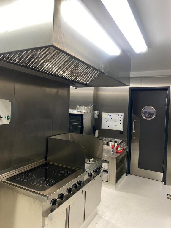 Um doch einige warme Gerichte zubereiten zu können, wurden später 2 Kühlschränke von Nordcap durch 2 MKN-Kochgeräte und eine Haube von Inoxair ausgetauscht.